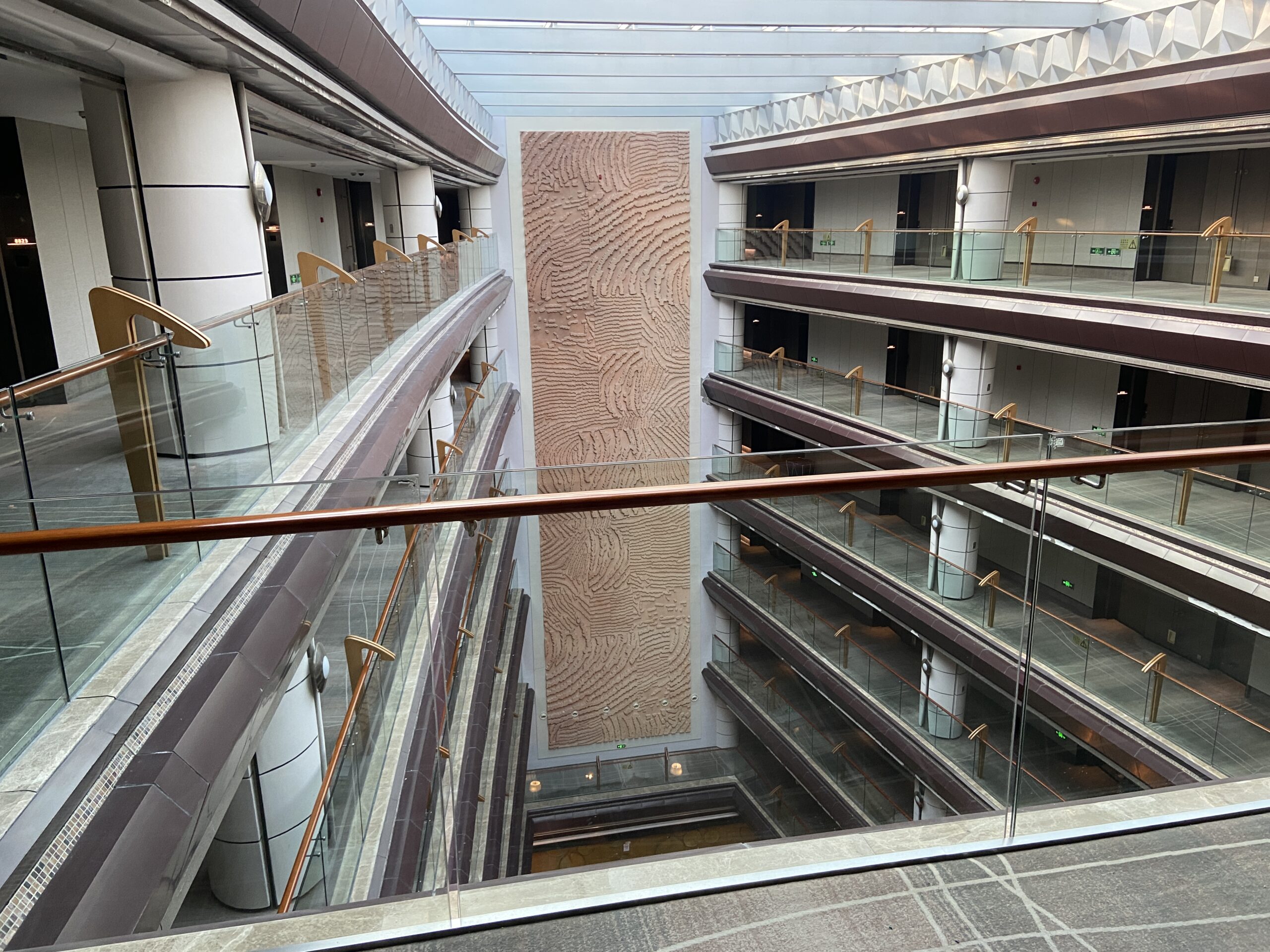 On arrival back in China, we again used the Transit Without Visa (TWOV) and applied for 144 hour one as we were also going to visit Shanghai/Hongqiao. Once public side side with luggage, follow the signs for “Hotel” or “Metro” and you should end up in a long corridor called “Wuzhou Middle Path” which connects Terminal 1 to Terminal 2. Half way along this walkway, follow the Hotel sign which should lead to a lift, go up and you will arrive outside the Da Zhong Airport Hotel, which is slap, bang in between the two terminals. It is a very strange design and only the end points of the North or South wings will give views of all the runways.